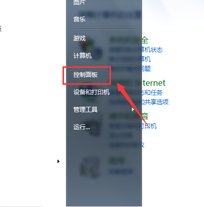2、在弹出的下拉菜单中选择“控制面板”并点击进行下一步操作;