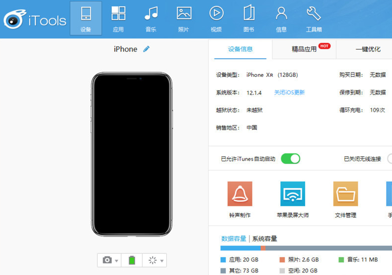 第一步,下载并打开iTools,将iPhone与iTools连接。