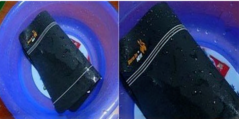 2、会看到水慢慢变成黑色的了,然后用手慢慢的顺鼠标垫,把里面的灰尘都用手压出来。如还有污渍,使用肥皂涂抹,轻轻地擦洗即可。注意不能揉,正面的布与胶垫容易分离,可以刷洗。