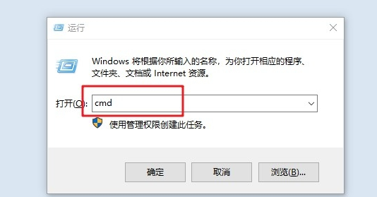 1、我们插入u盘进电脑,在电脑上按下win+r快捷键打开运行菜单,输入“cmd”回车确定打开命令提示符页面。
