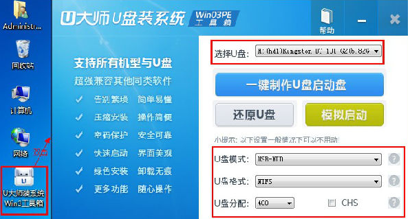 u盘大师制作启动盘的教程