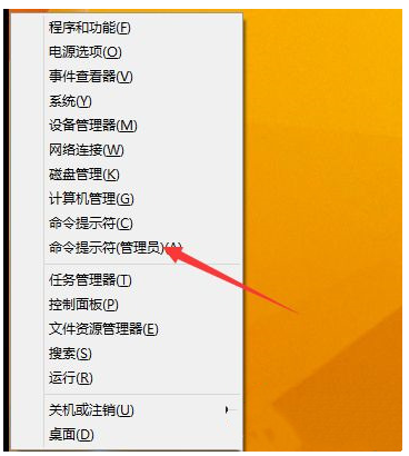 1、使用“win+x”快捷键打开快件菜单,点击选择“命令提示符(管理员)”;