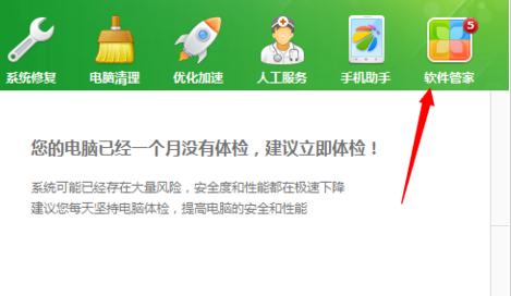 1、首先我们要把360随身wifi安装到电脑上,安装之后,电脑显示无法连接的。因为需要下载一个软件来完成连接。点击打开360卫士,然后在360卫士中点击打开“软件管家”。
