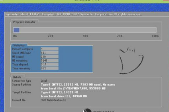 5,点击确定后,耐心等待系统文件释放至指定磁盘分区即可。