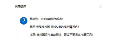 4.制作完成后点击“是”,进行模拟启动测试。