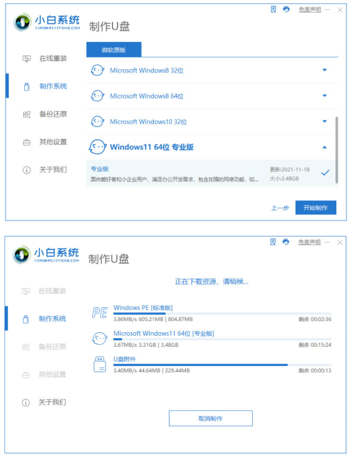 3.然后选择我们要安装的windows11系统,点击开始制作,就可以看到pe系统windows11已经被下载。