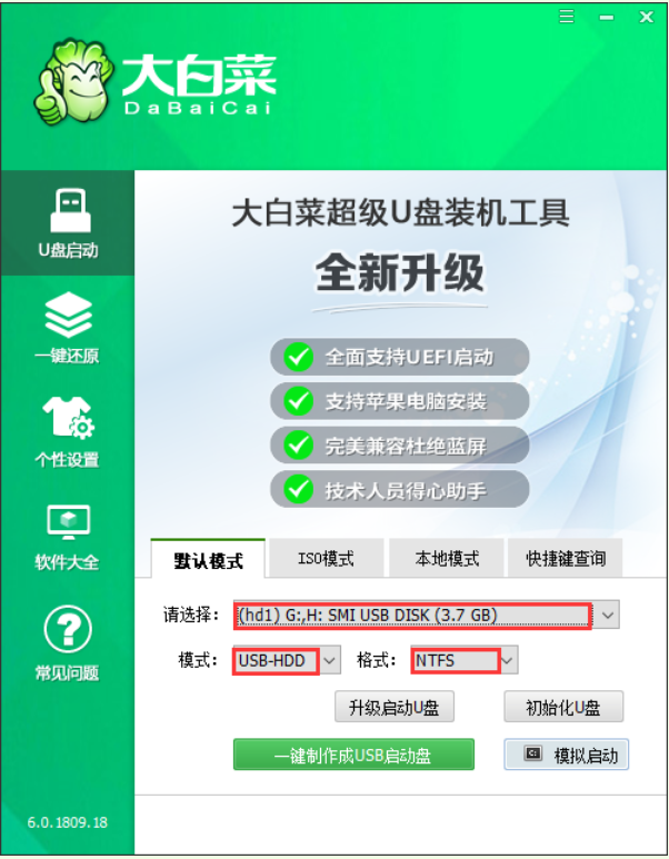 软件版本:大白菜超级u盘制作工具 6.0