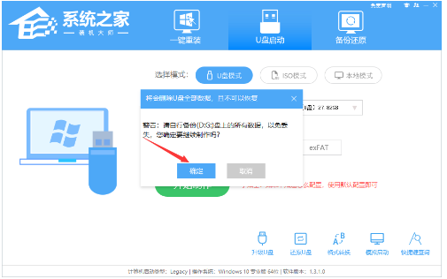 2、请提前存储U盘中重要数据文件,点击确定开始制作U盘启动盘。