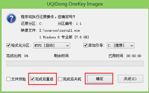 3、勾选复选框“完成后重启”,点击确定。