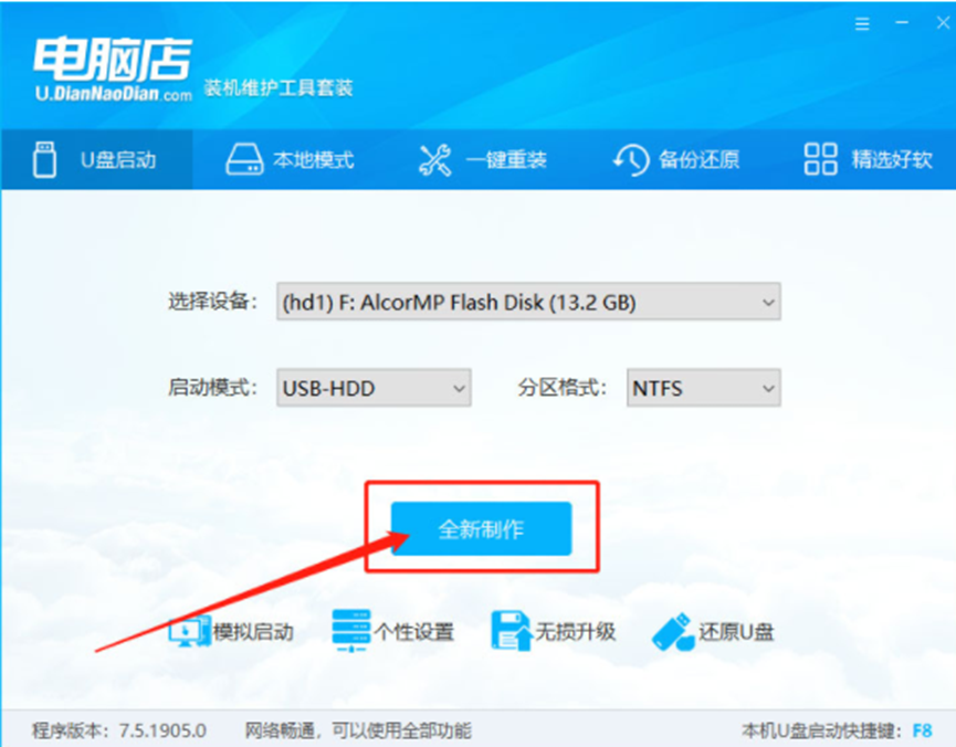 软件版本:电脑店装机维护工具