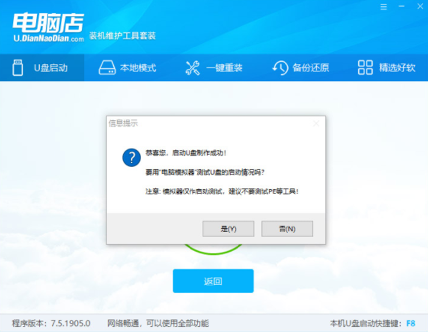 5、电脑店U盘装机工具,会自动对U盘写入电脑店相关数据。