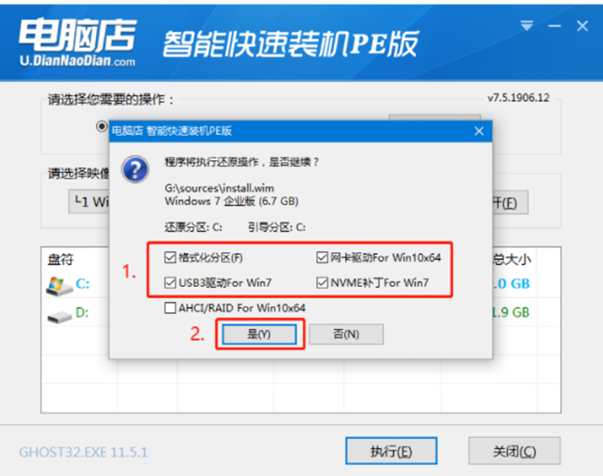 3、勾选win7系统的网卡和usb驱动安装,点击“是”。