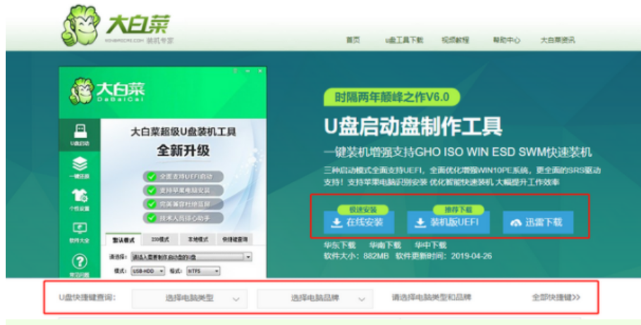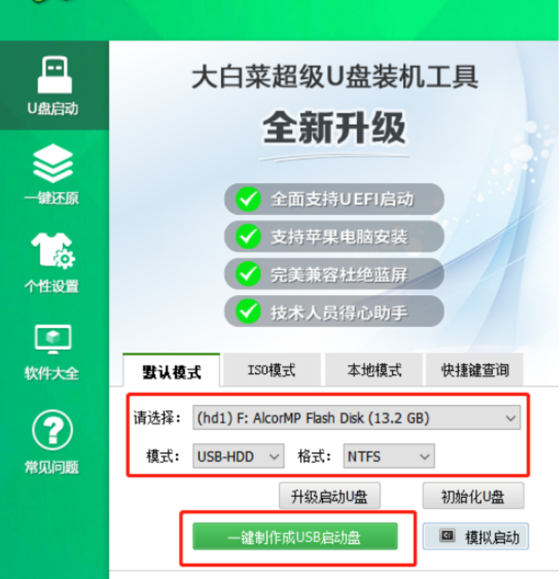 软件版本:大白菜U盘启动盘制作工具
