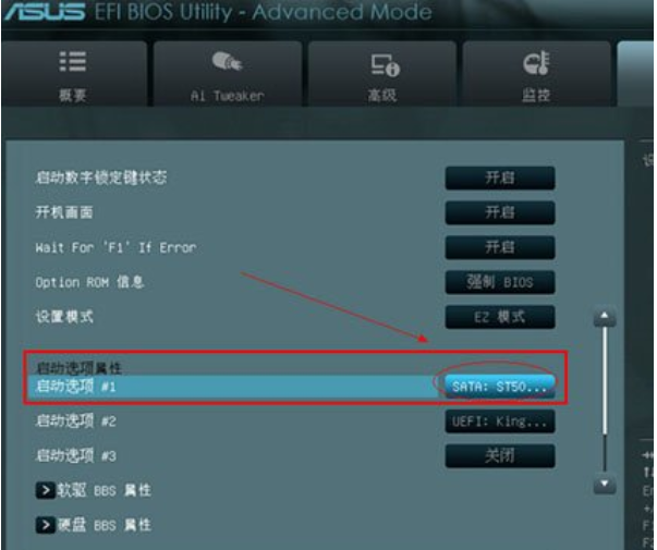 4、接着再用键盘上下方向键选择“启动选项#1”,注意它是硬盘为第一启动项,按回车键确认执行即可;