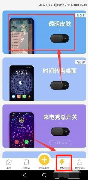 2、 然后打开Biu视频桌面,点开里面的 发现 页面后就可以看到第一个 透明皮肤,如下图