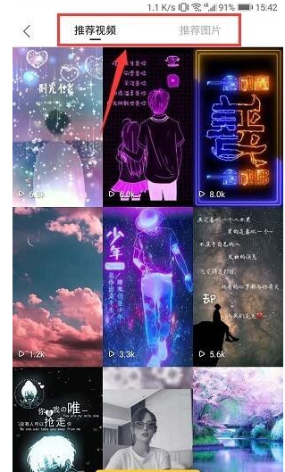 5、开启之后就会显示推荐视频或者推荐图片,选择一张自己的喜欢的主题,如下图