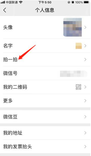 2、点击微信头像,找到“拍一拍”。