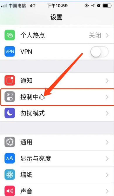 5.上滑,呼出快捷控制页面,点击如图所示按钮,能开始录屏(这时候录屏没有声音),如果想开启声音,长按如图所示按钮