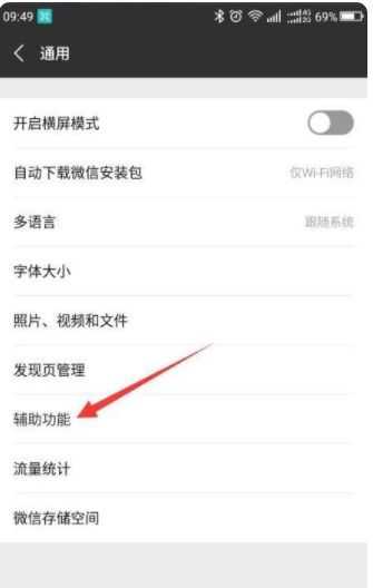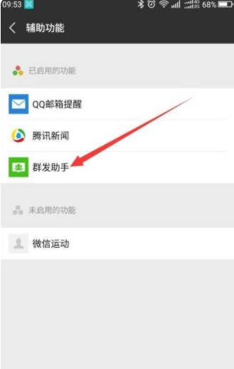 2、找到“辅助功能”点击,进入辅助功能界面就看到群发助手了,点击“群发助手”