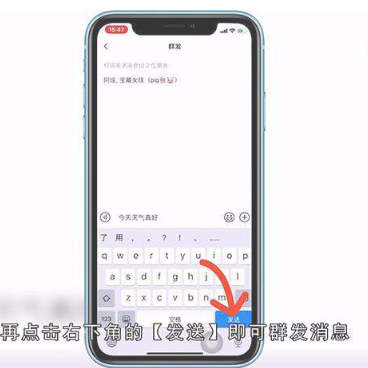 5、在输入框中输入要群发给好友的消息,然后点击【发送】即可群发消息。