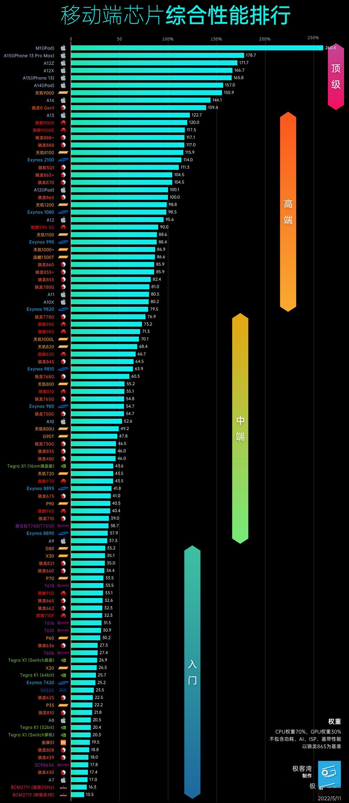 手机cpu是手机的核心部件,如同人的大脑,是整台手机的控制中枢,手机数据处理等都在中央处理器的监控之下,从而保证高效的运行。手机处理器的好坏,直接决定了手机的运行流畅度、性能发挥、功耗以及能效比等。这样很多小伙伴还不知道怎么去选择吧,这里小编带来2022年5月手机cpu最新天梯图,让大家在选择的时候有参考依据。