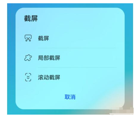 方法1:下拉通知功能栏,找到截屏点击直接截屏。也可以点击截屏旁边的三角标,选择截屏、局部截屏、滚动截屏;