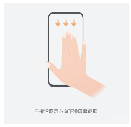 4、下滑截屏:三指沿图示方向下滑屏幕截屏。