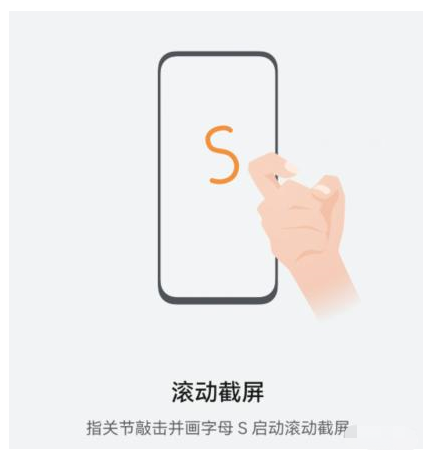 3、滚动截屏:指关节敲击并画字母S启动滚动截屏;