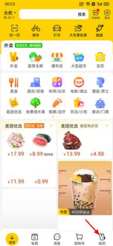 1、在美团的首页,点击右下角“我的”。