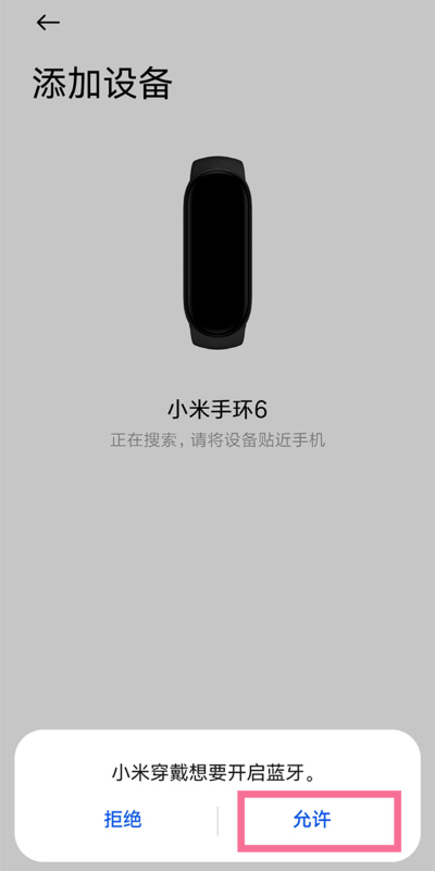 4、这样手机就会自动搜索小米手环6,在手环上确认绑定即可连接手机使用。