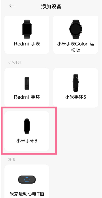 2、小编的设备是小米手环6,因此这里就选择【小米手环6】。