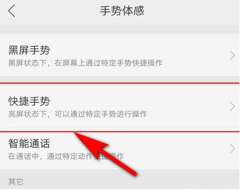 3、点击“快捷手势”进入手势设置页面。