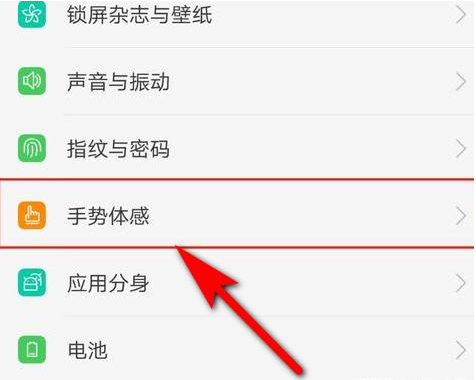 2、向下滑动找到【手势体感】点击进入。