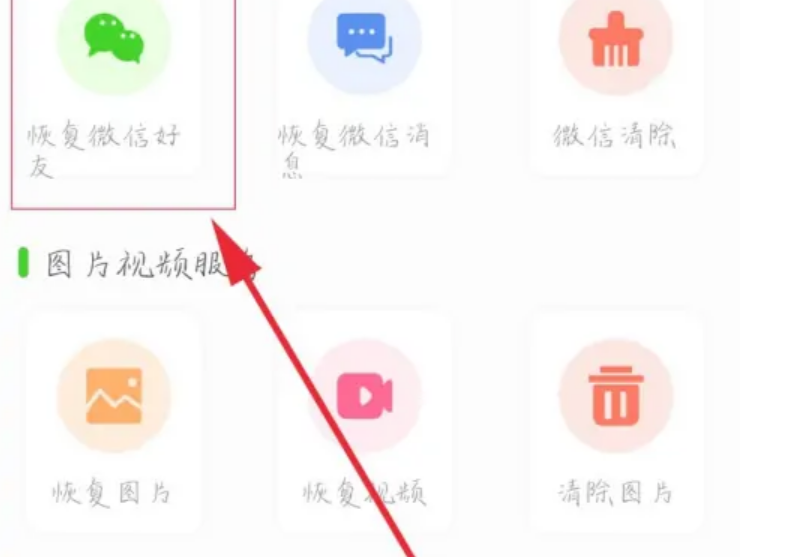 4、找到微信恢复助手首页的“恢复微信好友”并点击。