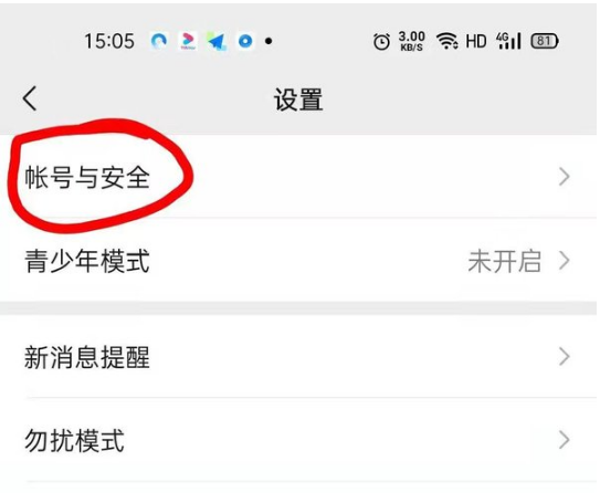 3、进入设置界面,点一下第一个选项【账号与安全】。?