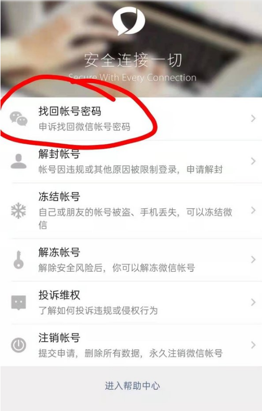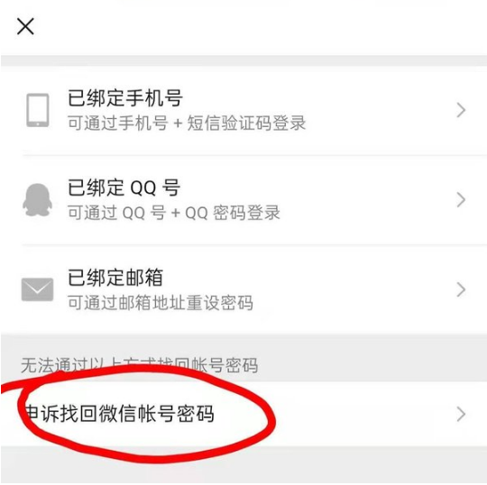 6、然后我们选在最下面一个选项【申诉找回微信账号密码】。?
