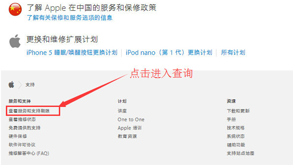 1、打开浏览器,在搜索框中输入:http://www.apple.com/cn/support/ ,进入到网站界面,下拉找到“查看服务和支持期限”或者直接输入网址:https://selfsolve.apple.com/agreementWarrantyDynamic.do?locale=zh_CN进入。