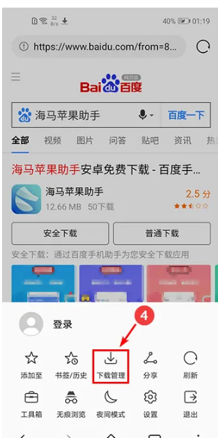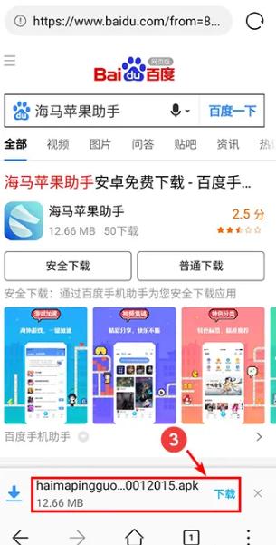 1、首先我们打开百度搜索“海马苹果助手”,点击普通下载即可。