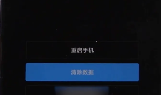 出来一个重启手机和清除数据两个选项,直接选择清除数据。