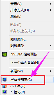 1,首先在桌面空白处右键打开菜单,选择“屏幕分辨率”