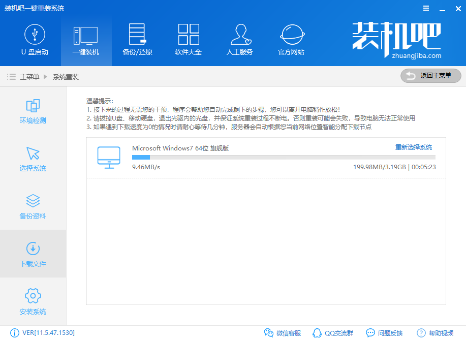 装机吧一键重装win7系统教程