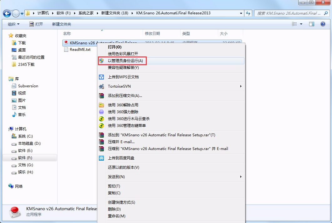 1、我们先下载KMS win7激活软件,下载解压之后,以管理员身份运行它。