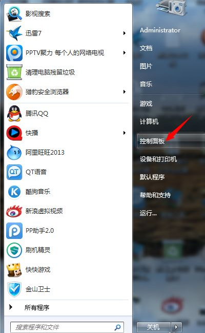 1.找到控制面板,在(开始)里面。