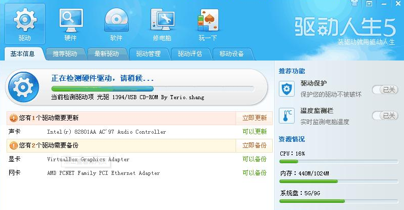 2.体检完成后该软件就会显示出当前需要进行更新或者有问题的驱动,我们先进行备份操作。