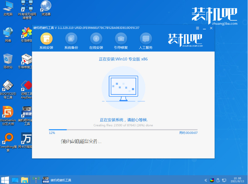 5.进入后,装机工具会自动进行系统的安装操作,我们需耐心等待安装完成。