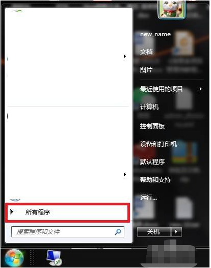 1.在win7系统开始菜单,打开【所有程序】,如下图所示。