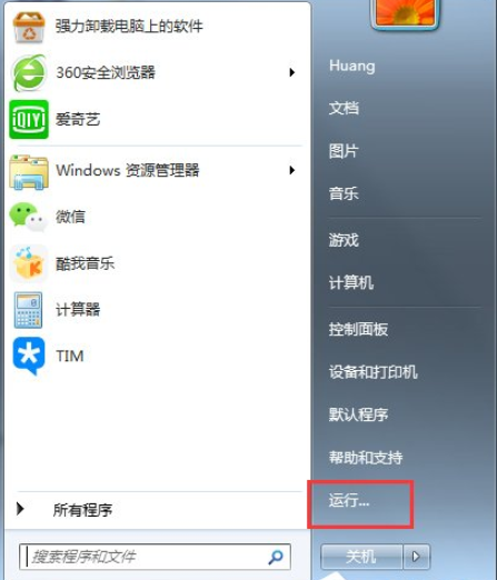 1、首先我们打开win7桌面左下方的开始菜单,选择运行打开。或者可以直接按下快捷键win+r键打开运行菜单。