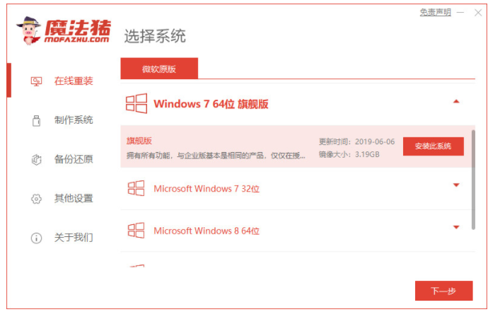 进入工具找到win7系统进行下载