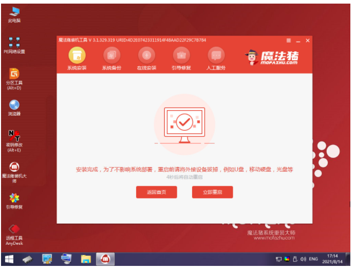6.系统安装完成后,我们选择下方“立即重启”。