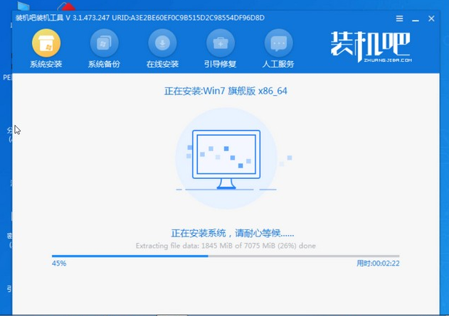 1、电脑安装好装机吧一键重装系统软件并打开,在这就可以下载安装win7的64位系统